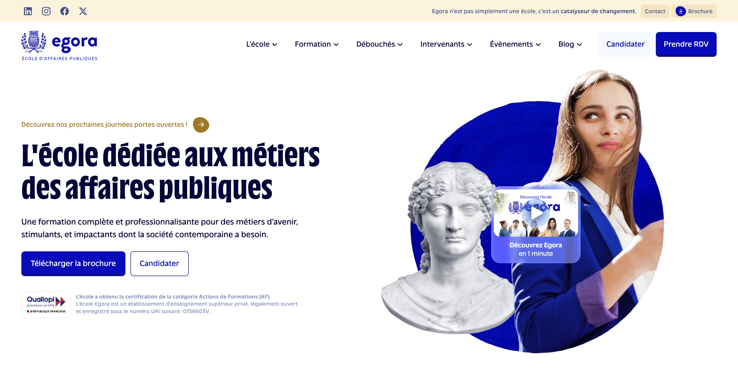 Fin 2023, j'ai été approché par Grégory Horn et Andréa Ankri-Avy pour les accompagner dans le lancement de leur école d'affaires publiques à Paris. Depuis le lancement, nous collaborons pour faire évoluer pas à pas tous les aspects du site web : blog, évènements, stages, élèves…